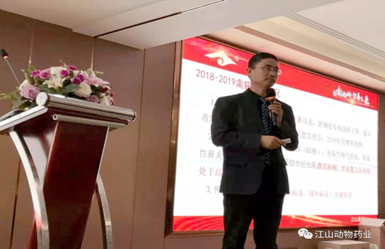 Mr. Meng Zhimin, deputy general manager and R&D director of Jiangshan Group, and professor of Hebei Engineering University, explained the recent trends in poultry diseases and predicted the future diseases for farmers and distributors.